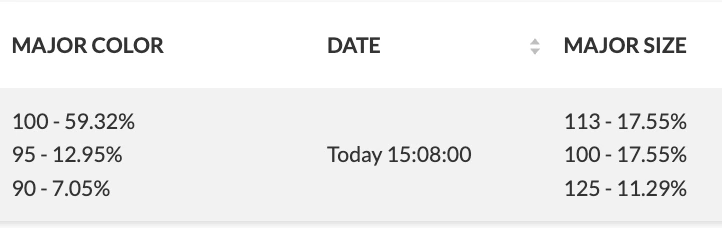 Now, when viewing Spectre results, you’ll notice that color and size results can be sorted by descending percentages making it easier to identify the size or color value with the highest percentage.