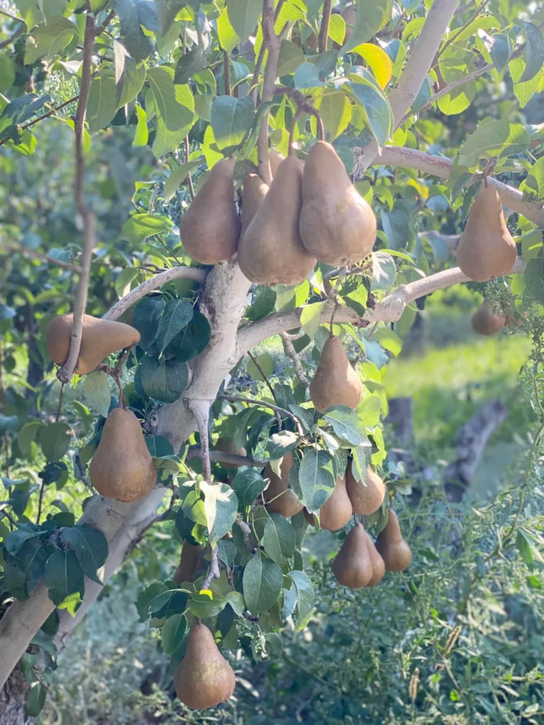 Schmitten Orchards began with 30 acres of pear trees, which soon expanded to 50 acres of pears and 5 acres of cherries. The acreage has fluctuated over the years and now sits at 80 (32 hectares). The weather and elevation of the location provide ideal growing conditions for pears and cherries, as they thrive in a climate with long, hot summer seasons and minimal rainfall.