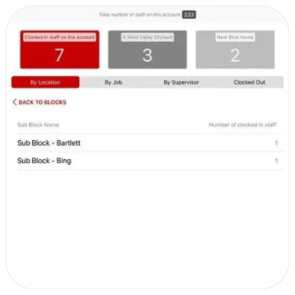 With this latest release, we have added search functionality plus the ability to add sub-blocks. This means you can drill down through layers, from orchard, to block, to sub block, to gain strong insights on your picking volumes.