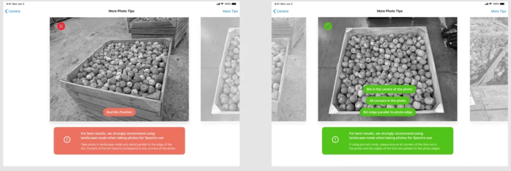 Guidance to help you take the best Spectre photos of bins and buckets, and gain the most accurate Spectre data, has been added for our customers using Spectre Hand-Held (on an iPad).