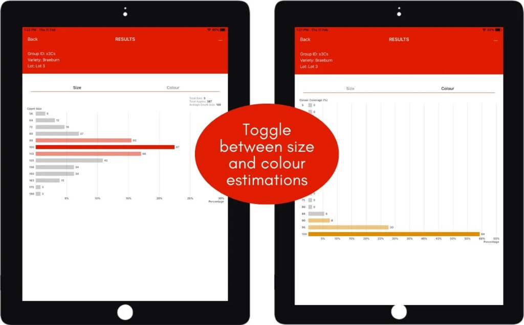So we did that too! When Hectre clients subscribe to both size and colour, a single image captured with the simple click of an iPad, delivers up both accurate size and colour data in seconds and users can toggle between the two screens.